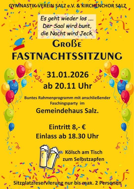Wenn Ihr unsere Arbeit unterstützen möchtet - unser Chor, aber auch unser Förderverein freuen sich über neue Mitglieder - einfach Beitrittserklärung herunterladen, ausfüllen und unterschreiben und zur nächsten Chorprobe mitbringen: Hier klicken: Beitrittserklärung oder einfach per Mail an: Kirchenchor Cäcilia Salz | Nächste Veranstaltung:Save the Date 31. Januar 2026 Große Fastnachtssitzung des Kirchenchores und des Gymnastikvereins --------------------------------